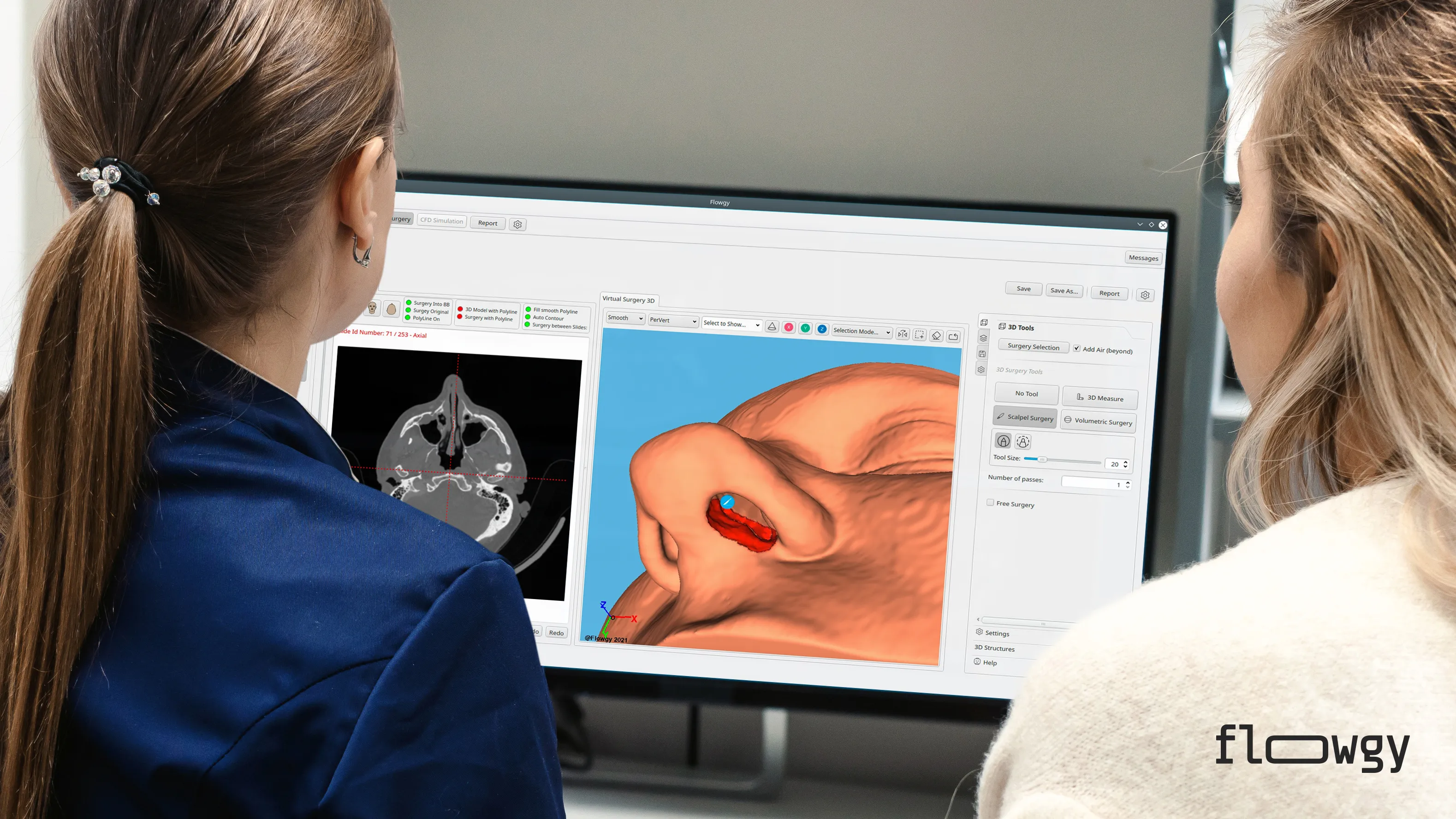 Flowgy generates scientific reports on nasal functional capacity and surgical planning within hours, using the patient’s CT scan.